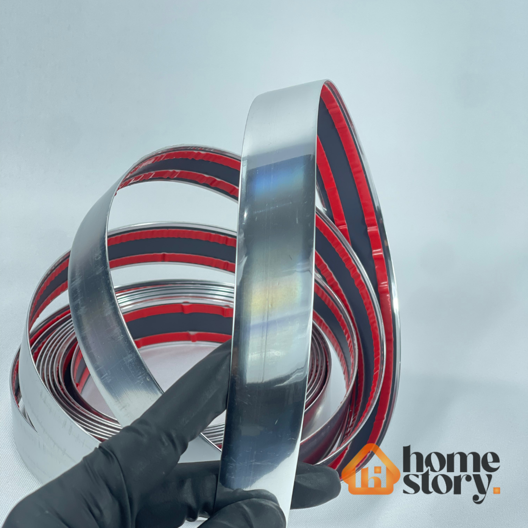A Fita Metalizada de PVC 27mm é a mais larga da linha, ideal para quem busca um acabamento visual marcante e sofisticado. Com 27mm de largura e 5 metros de comprimento, é perfeita para aplicações que exigem maior presença e cobertura, como espelhos grandes, painéis e detalhes decorativos robustos.